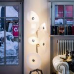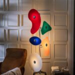 La lampada da terra Orbital è un progetto unico nella storia del design, una composizione di sagome bianche o multicolori che diffondono un segnale grafico e luminoso inconfondibile nello spazio.